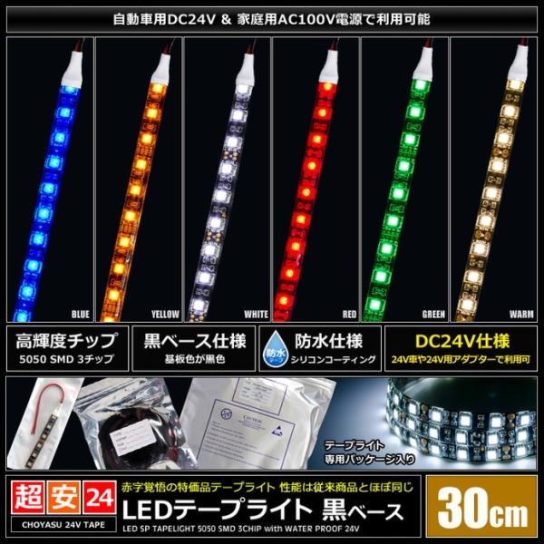 LEDテープライト 2本入り 防水 24V 30cm 3チップ 黒ベース ケーブル12cm