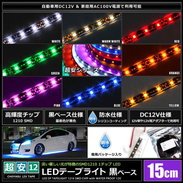 LEDテープライト 2本入り 防水 12V 15cm 1チップ 黒ベース ケーブル12cm