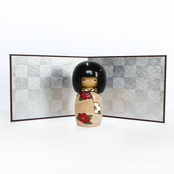 上品な銀市松柄の美しい二曲屏風です。前に置いて飾っていただくものを華やかに引き立たせます。フィギュアや人形はもちろん、生け花などを飾るのにもおすすめです。