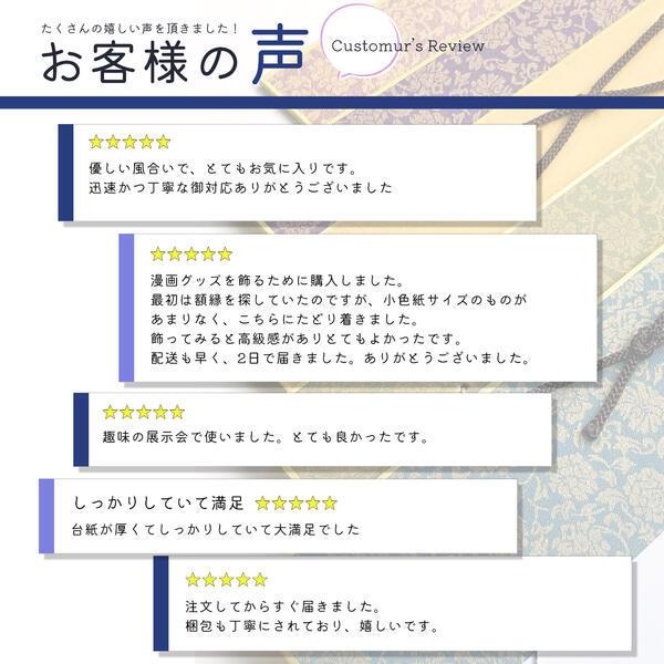 ご自身でかかれた作品や、いただいた色紙を入れたりすることが出来ますし、最近では、アニメや漫画などの色紙ARTに小色紙サイズ(ミニサイズ)の色紙が使用されることもしばしばありますので、そちらを簡単に飾ることが出来ます。