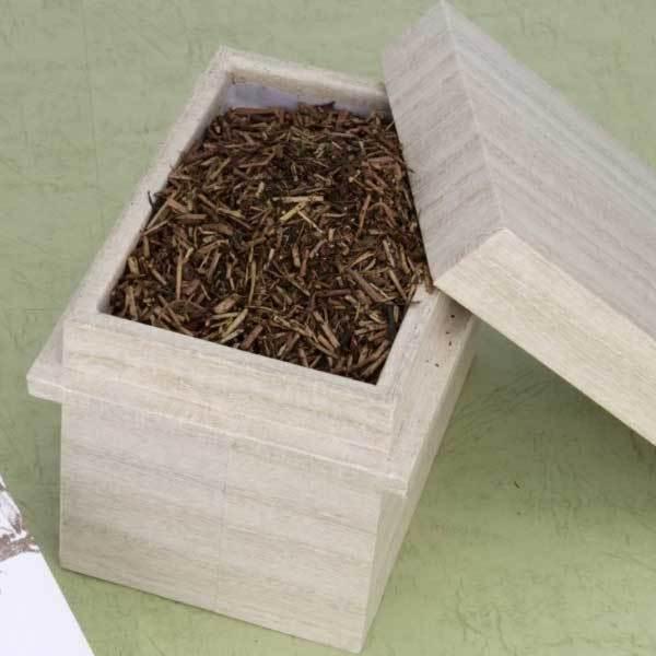 主に二番茶の茎葉を使用し、自家焙煎工場の砂炒り焙じ機で丁寧に火入れしてふっくらした茎に仕上げました。