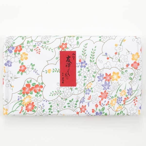 【商品について】加賀五彩を中心に四十色から五十色を使い染められる、伝統の加賀友禅。この多彩で華やかな加賀友禅の衣を、淡く紅色に染めた味噌あんを羽二重餅でそっと包み、金箔を添えてお菓子にしました。
