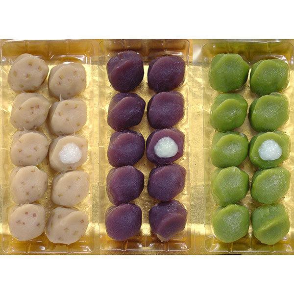 この商品は定番のあんころに加えて、「栗」「抹茶」の3種の味が楽しめる詰合せになっております。