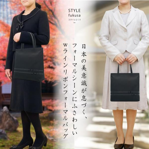 フォーマルバッグ Wラインリボン 冠婚葬祭 黒 3点セット 京都産(鞄 ふくさ 数珠入れ)撥水 弔事 ブラック 葬式 ブラックフォーマル おしゃれレディース