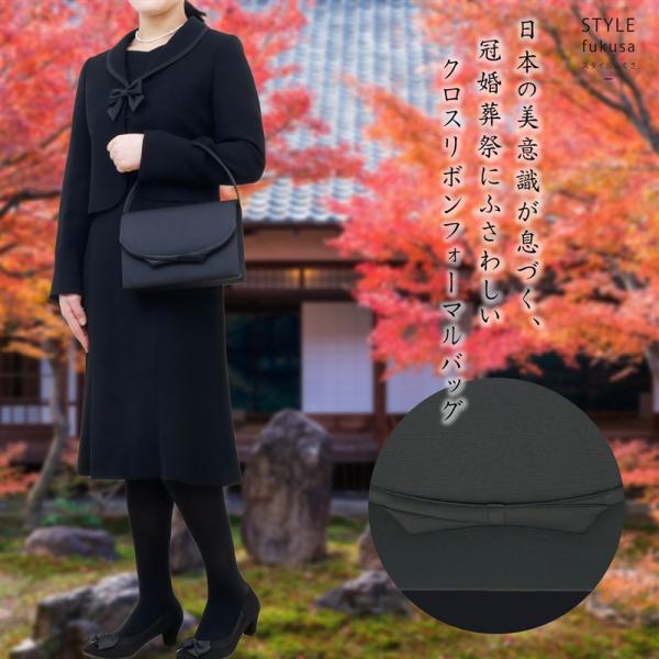 フォーマルバッグ 冠婚葬祭 黒 3点セット 京都産(鞄 ふくさ 数珠入れ)フチリボン 撥水 弔事 ブラック 葬式 ブラックフォーマル おしゃれレディース