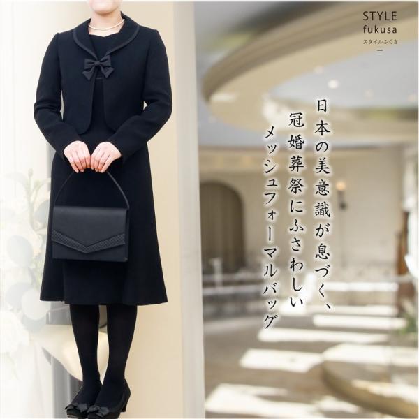 フォーマルバッグ 冠婚葬祭 黒 3点セット 京都産(鞄 ふくさ 数珠入れ)メッシュ 撥水 弔事 ブラック 葬式 ブラックフォーマル おしゃれレディース