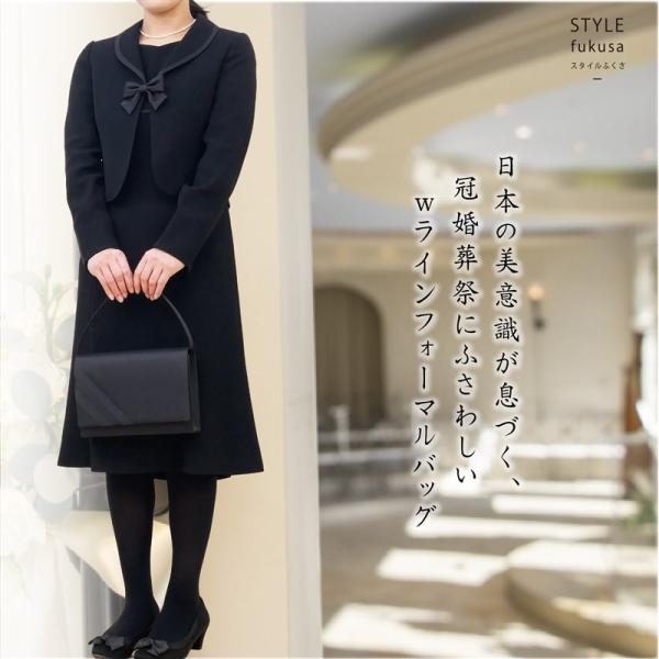 フォーマルバッグ 冠婚葬祭 黒 3点セット 京都産(鞄 ふくさ 数珠入れ)Wライン 撥水 弔事 ブラック 葬式 ブラックフォーマル おしゃれレディース