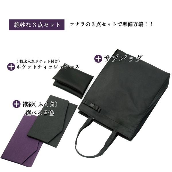 サブバッグ フォーマル 黒 セット 3点 A4 日本製 葬式 結婚式 ふくさ 袱紗 ティッシュケース 冠婚葬祭 レディース リボン マチ付き