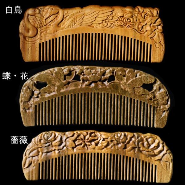 ヘアブラシ 頭皮ブラシ くし 櫛 木製 櫛 クリスマスプレゼント 彫り櫛 天然檀木 ハス 両面彫り ギフト 敬老の日 誕生日プレゼント 専用収納袋付き