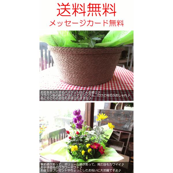 季節のおまかせポットアレンジメント ロープバスケット ブラウン 寄せ鉢 薫る花 花苗 セット ベランダ 玄関 ガーデニング 寄せ植え