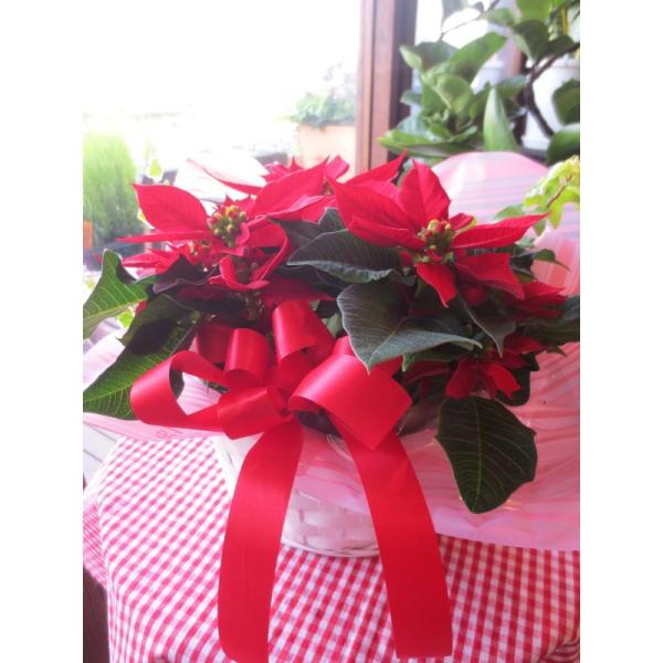 ミニポインセチアの寄せ鉢 Mサイズ フラワーバスケット 花 フラワー 鉢花 花苗 プレゼント ギフト お誕生日 開店祝い お祝い お歳暮 御歳暮 玄関 冬 セット