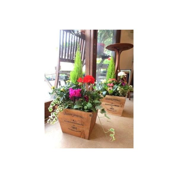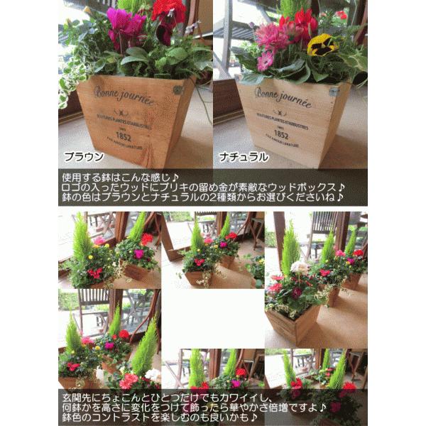 季節のおまかせ寄せ植え(鉢色選べるスクエアウッドボックス鉢植え) 寄せ植え アソート 花苗 鉢花 ハーブ プレゼント 誕生日 開店祝い 引越し ガーデニング