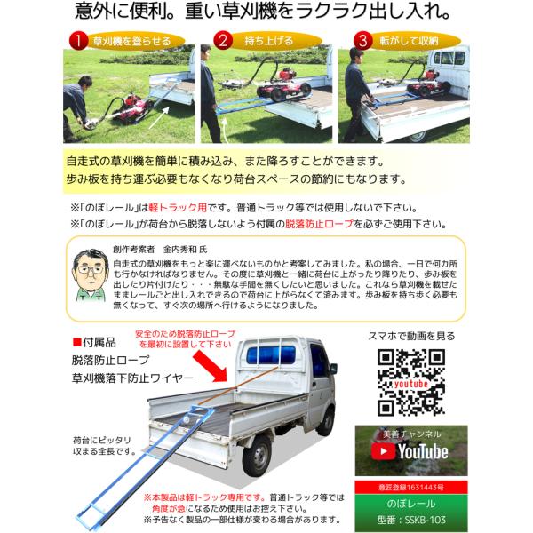 畔草刈機昇降レール 美善 のぼレール SSKB-103 草刈 法面 草刈機 自走式草刈機 スパイダーモア ブリッジ不要 【94-56】