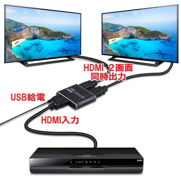 HDMI 分配器 1入力 2画面同時出力 スプリッター アルミ合金筐体 超コンパクト