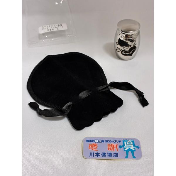 ペット供養「ミニ骨壺/ハート/シルバー/大/巾着袋付」ステンレス製/遺骨入/遺灰/分骨//手元供養/川本仏壇店/川本仏