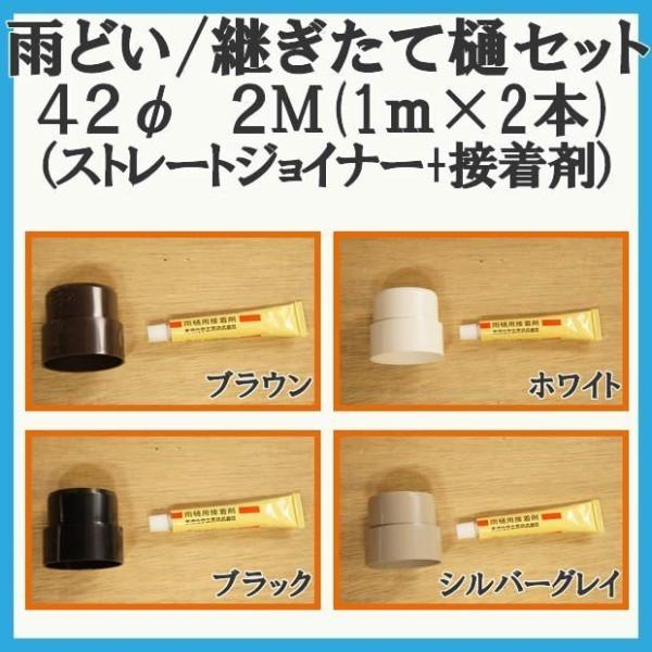 丸樋 テラス・カーポート用 42φ2M(1m×2本)+ストレートジョイナー+接着剤セット (ブラウン/ブラック/ホワイト/シルバーグレイ)