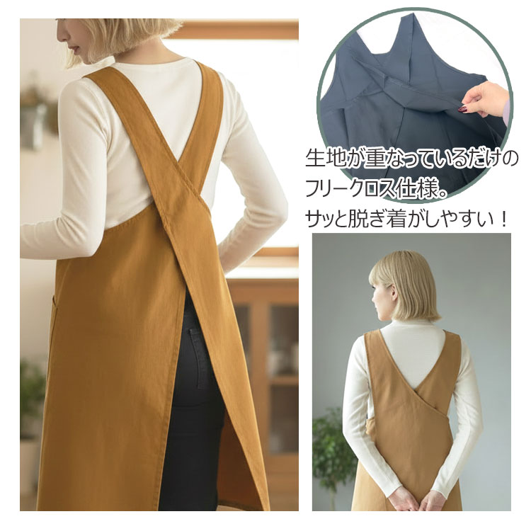 ・かぶるだけで簡単に着用できるフリークロスエプロン