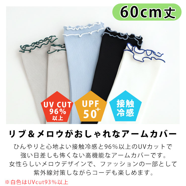 アームカバー レディース ロング 接触冷感 uvカット ひんやり 60cm 紫外線対策 日焼け防止 uv 無地 レース メロウ リブ 指穴 手の甲 涼しい 可愛い 通気性 手袋