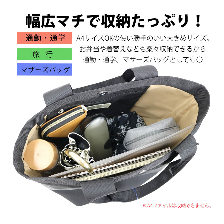 ・A4も楽々収納! 通勤・通学に最適な大容量トート。
