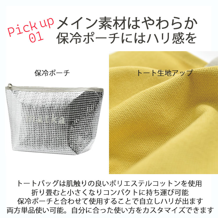 ・トートは折りたためるほど柔らかい素材だけど保冷ポーチと合わせて使うと自立OK!