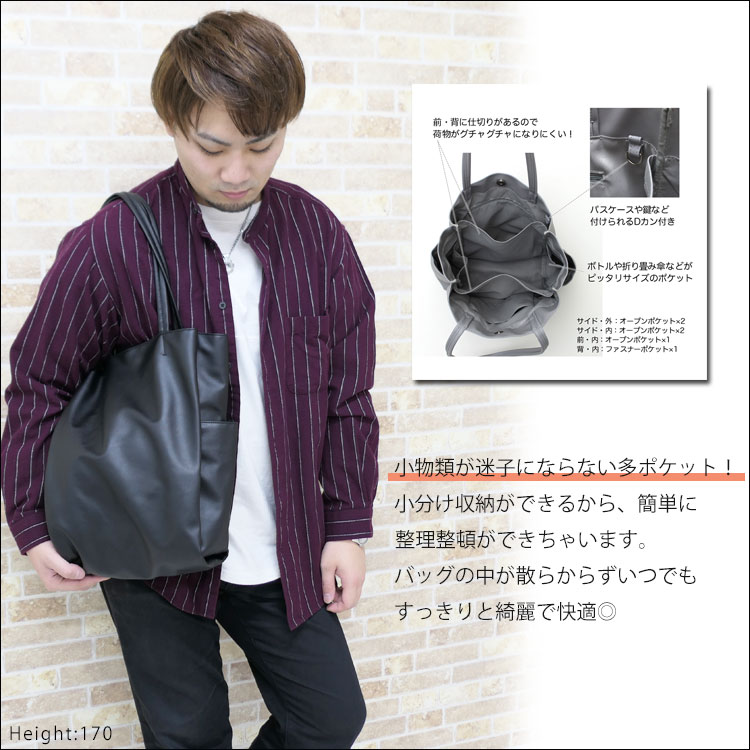 トートバッグ メンズ 縦長 A4 大きめ 軽い おしゃれ 大容量 ビジネス 通勤 通学 大学生 合皮 レザー 肩掛け 手提げバッグ 縦型 スクエア 軽量 シンプル 無地 黒