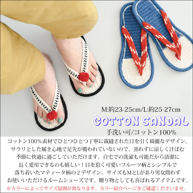 ・Mサイズ/Lサイズの2展開のユニセックスコットンサンダル♪