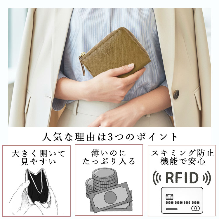 ・スキミング防止機能付きで、コンパクトでも安心のセキュリティ。