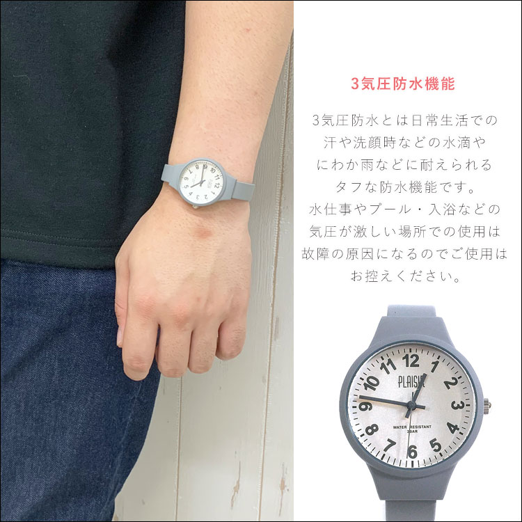 ・日常使いに安心な3気圧防水機能付き。大きめフェイスで文字盤も見やすい◎