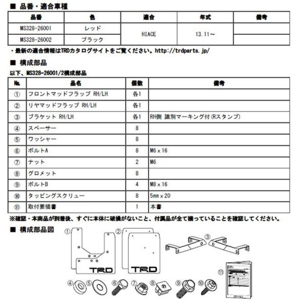 ハイエース 200系 全車用 TRD マッドフラップ (レッド) 前後4枚セット 品番: MS328-26001 (TRD PERFORMANCE PARTS 正規品)