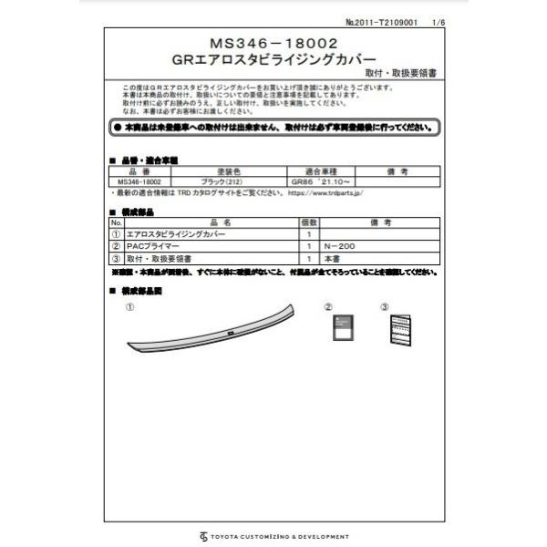 TOYOTA GR86 (ハチロク) ZN8 / FA24 用 TRD GRエアロスタビライジングカバー 品番: MS346-18002 (TRD PERFORMANCE PARTS 正規品)
