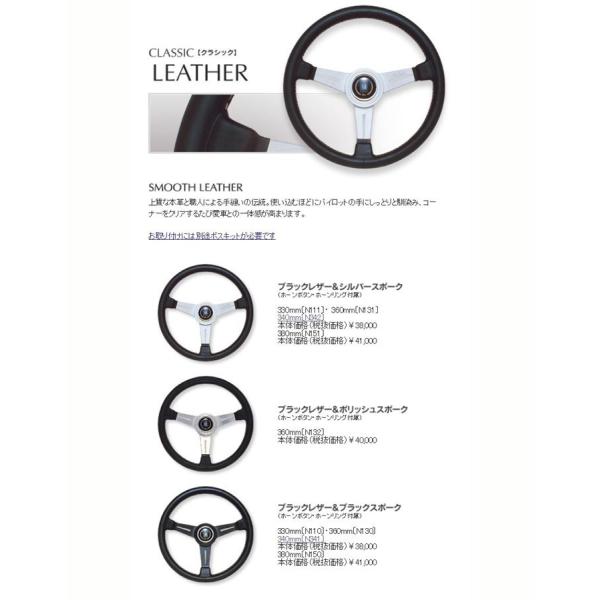 [ FET NARDI CLASSIC LEATHER 33φ ] 330mm スムースレザー ブラックレザー/ブラックスポーク 品番: N110 (FET 正規品 ナルディ クラシック レザー)