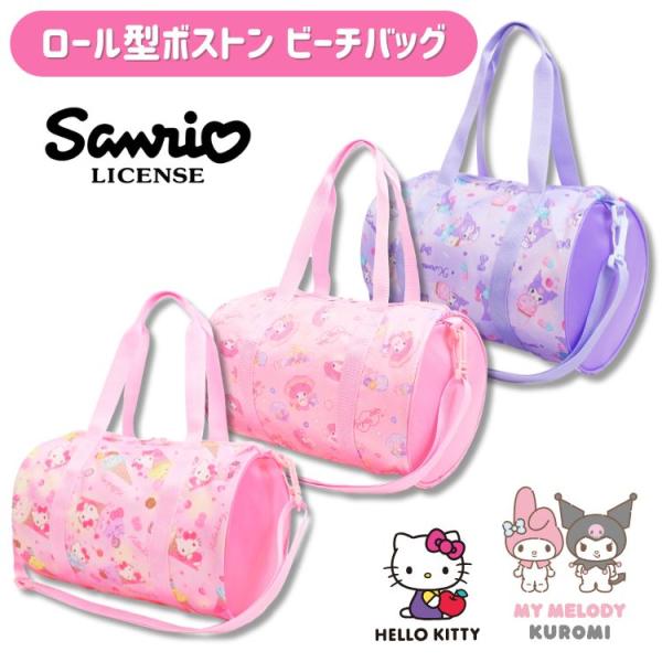 刺繍可 ハローキティ マイメロディ クロミ プールバック ビーチバッグ ロールボストン ファスナー付き 水泳 スイミング 女の子 キッズ 子供 高波クリエイト