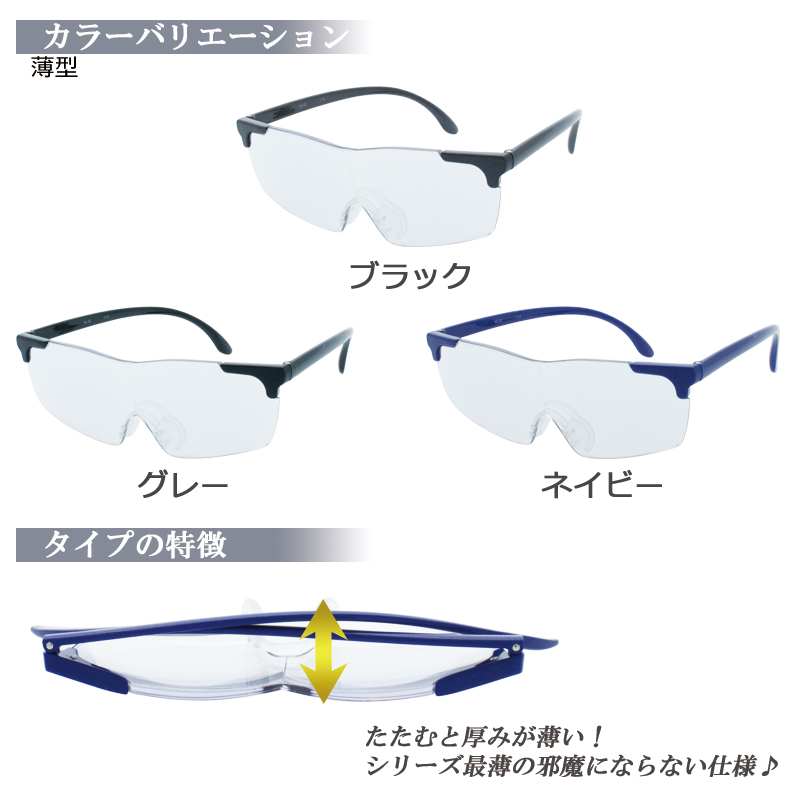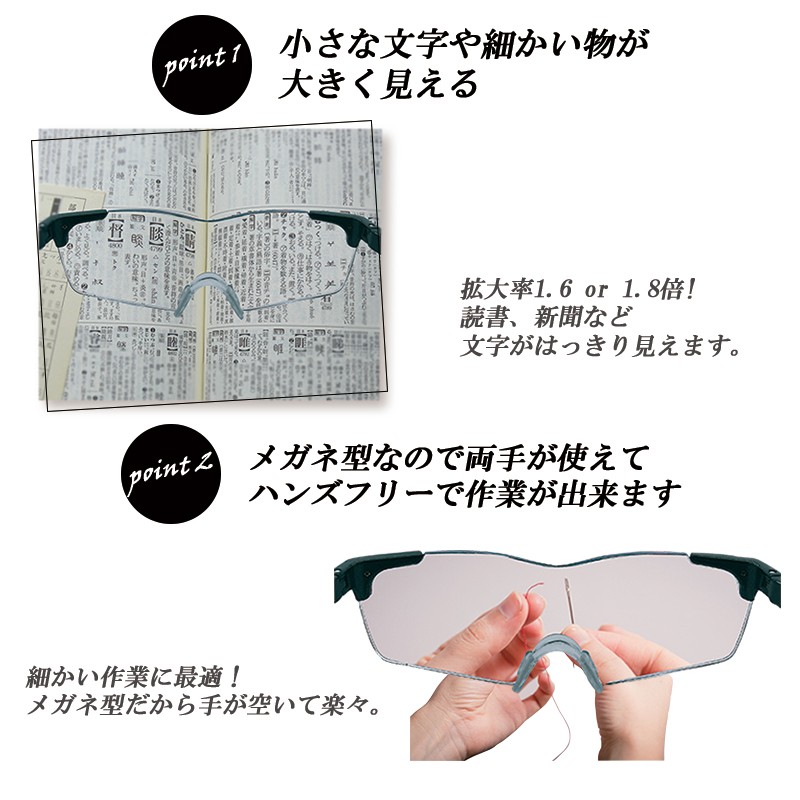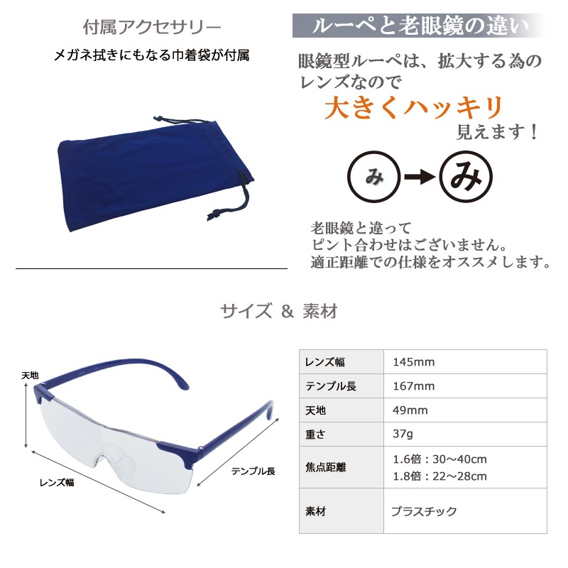 メガネ型ルーペ ルーペメガネ 薄型 1.6倍/1.8倍 ルーペ おしゃれ メガネ 軽量 オーバーグラス 拡大 父の日 敬老の日 ギフト プレゼント 幅広 大きめ
