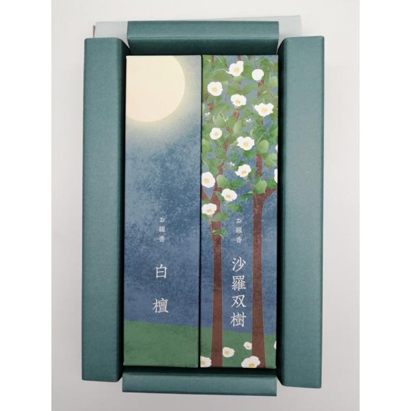 京都香彩堂切手貼って送れるお線香/白檀・沙羅双樹各1箱お悔やみカード付/訃報、お盆、命日、法要/喪中見舞い御香ギフト
