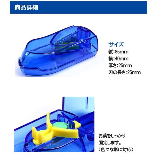 ■使い方:☆薬をピルカッターにセットし、固定台でしっかり留めたらホッチキスの要領でパチンとするだけです。