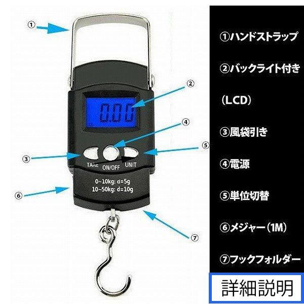 フィッシングスケール デジタルはかり 吊りスケール 吊りはかり メジャー付き 1M 電子吊り量り 50kg 荷物 フィッシングメジャー ポータブル デジタル秤