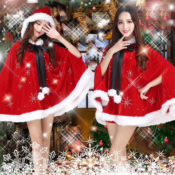 【 女性用 服 ファッション 冬 ウィンター ベロア セクシー かわいい 大人 リボン ポンポン フード付き 仮装 パーティー クリパ コスチューム サンタ レッド 赤色 クリスマスイブ 】