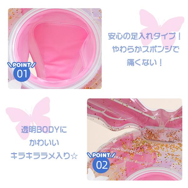 ピンクバタフライフロート 浮き輪 子供 足入れ キッズ フロート 女の子 かわいい プール 海 水遊び 幼児用 50cm キラキラ ラメ 足穴 浮輪 蝶々 ちょうちょ 羽