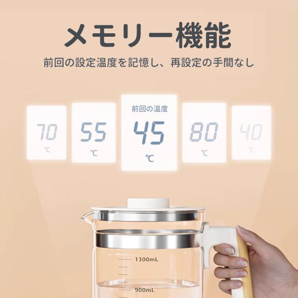 電気ケトル ガラス ケトル 1.3L 600W 温度調節 保温 コーヒー/紅茶/調乳 コーヒーケトル 湯沸かしケトル 24時間の保温機能 空焚き防止 電気 赤ちゃん おしゃれ