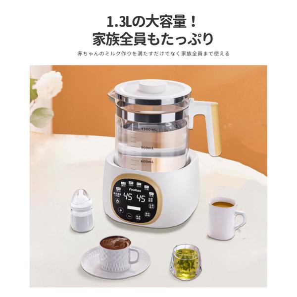 調乳ポット ボトル Feekaa ウォーマー ミルクウォーマー 温度調節 予約 保温 大容量 ミルク加熱 電気ポット 電気ケトル 多機能 ケトル 1.3L 電気 空焚き防止 耐熱ガラス 離乳食