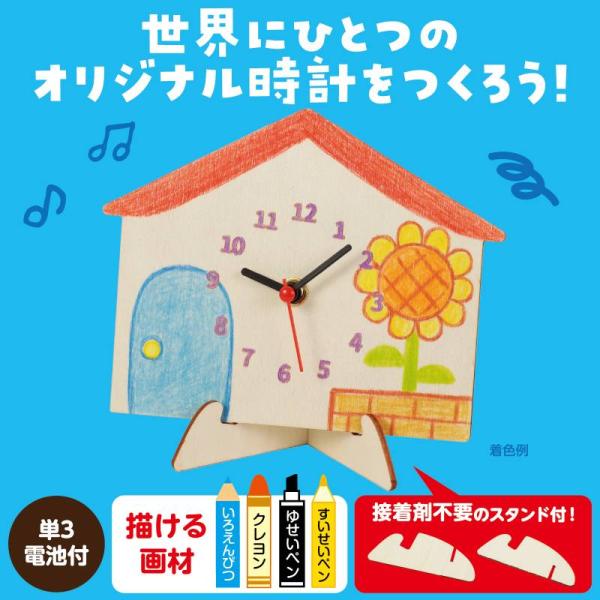 お絵かきして世界にひとつだけの時計が作れる木製工作キットです。