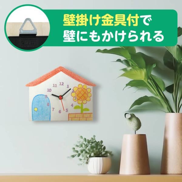 壁掛け金具やスタンド付きで作った時計をすぐに飾れます。