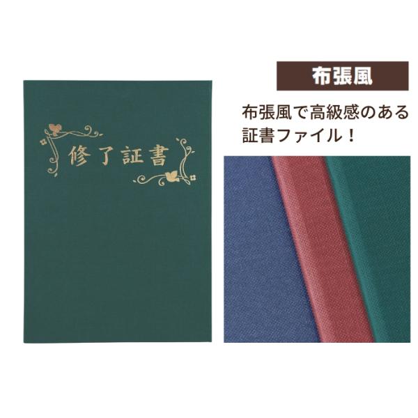 「修了証書」印刷済 証書ファイル 高級布張風 中(片面A4) (2個までメール便可能) 証書ホルダー 証書ケース 卒業証書 卒園証書 卒業式 名入れ 幼稚園 小学校