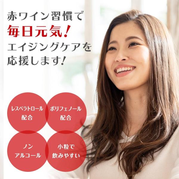 1日2粒で赤ワイン約1.5杯分のポリフェノール200mgとレスベラトロール0.5mgが摂れる赤ワイン習慣。