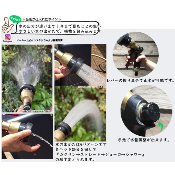 ノズルは丈夫な水流調整できる金属タイプで、手元で水量調整できるダイヤルが付いています。