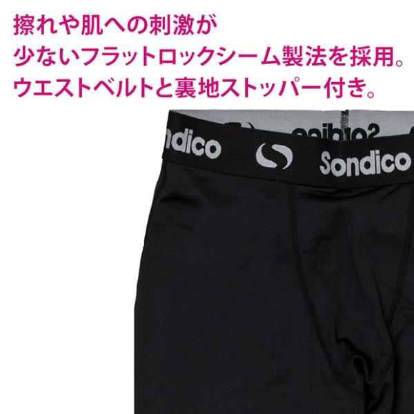 イギリスの伝統あるサッカー専門ブランド・ソンディコのロングインナーパンツ。冬でも暖かい起毛タイプ。ウエスト部分にゴム素材を使用することで、ウエストがずれ上がってきてしまうというプレーヤーの悩みを改善。