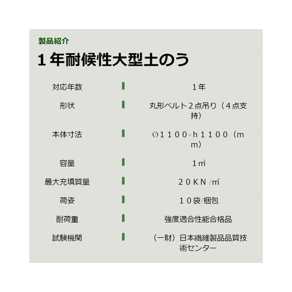 【10枚梱包】耐候性大型土のう 1年耐候(2トン用)強度適合性能合格品 フレコンバック φ1100×h1100 トンバック 1m3 トン袋 20K/m3 トン土のう