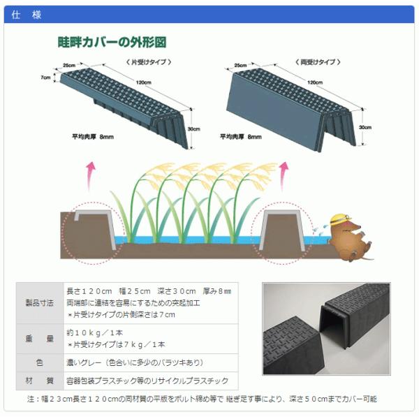 【20本セット】再生プラスチック製 畦畔カバー 幅250×深さ300×長さ1200 両受タイプ あぜカバー 畦カバー 畔カバー
