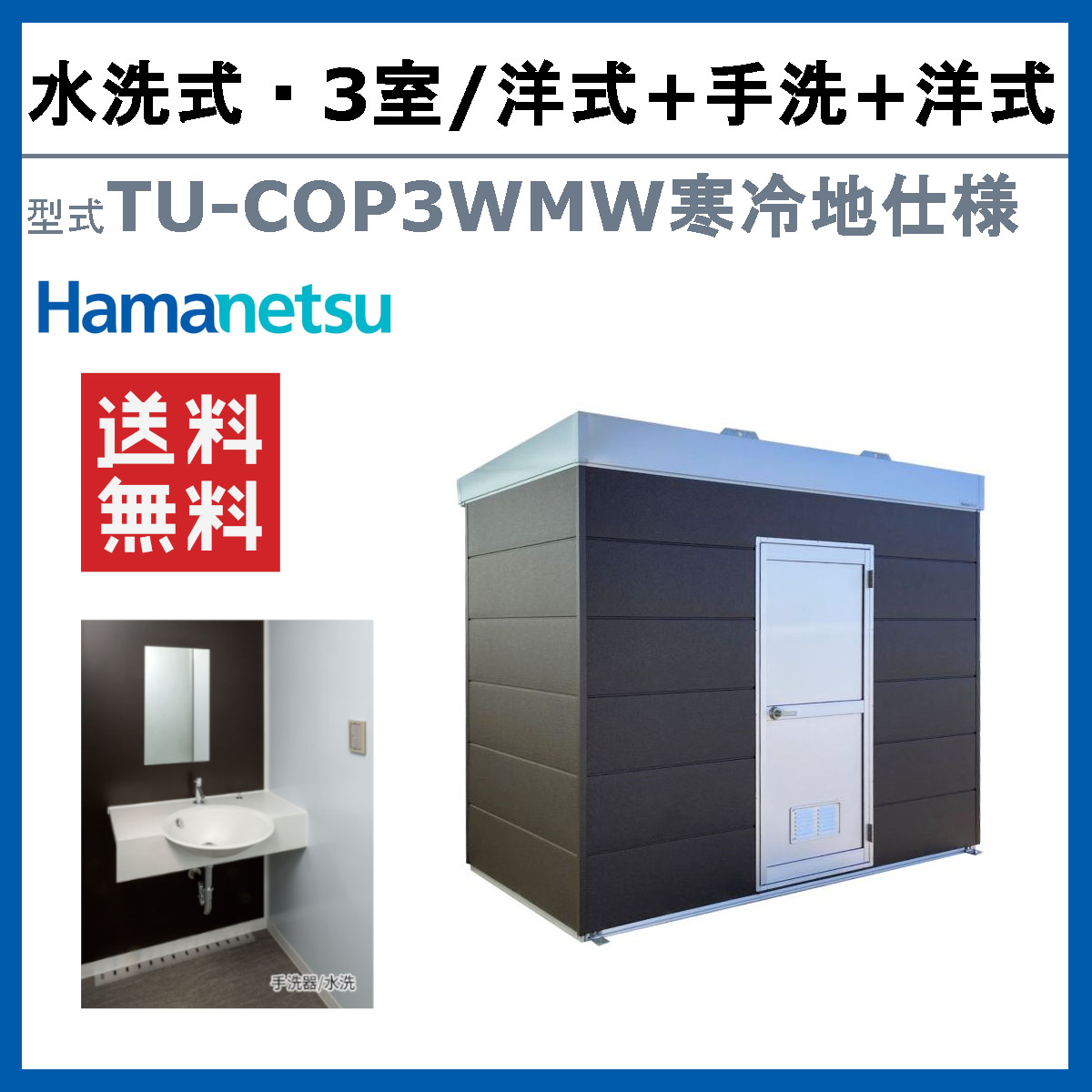 ハマネツ トイレユニット TU-COP3WMW 寒冷地仕様 コムズトイレプラス 水洗タイプ 洋式+手洗+洋式 屋外用 3室 快適 常設 パウダールーム 仮設トイレ