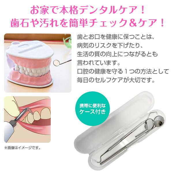 デンタルケアセット ケース付き 歯鏡 両頭エキスプローラー 探針 スケーラー風 オーラルケア 歯石除去ポスト投函送料無料